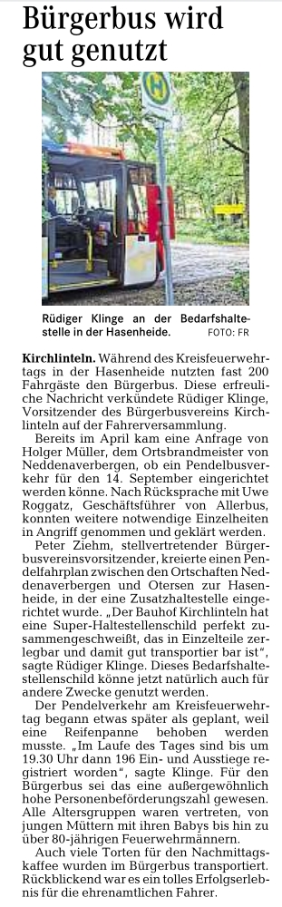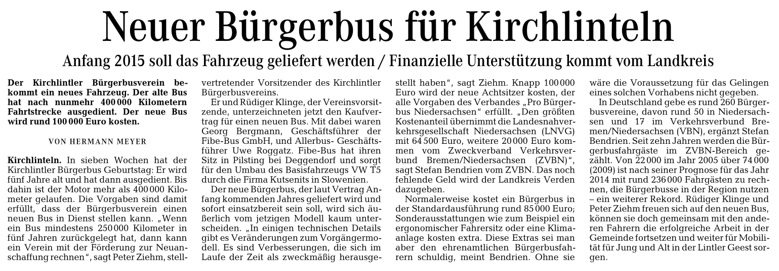 | Neuer Bürgerbus für Kirchlinteln . . . VN vom 2. September 2014 | weiterlesen |
