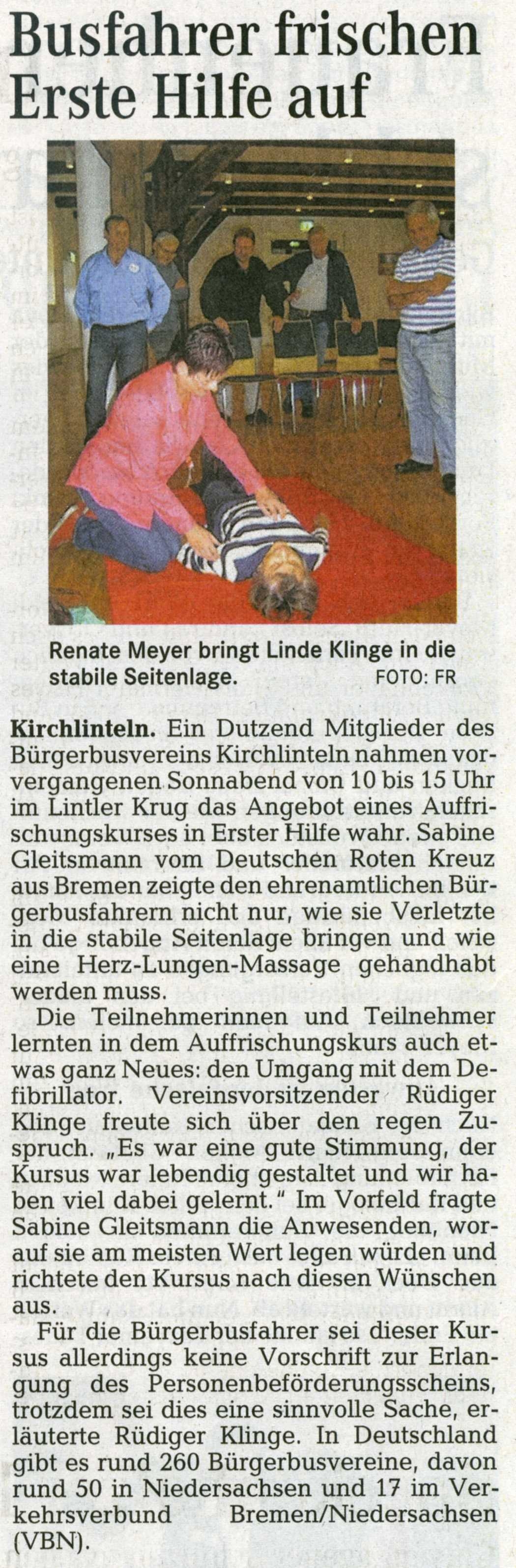 | Busfahrer frischen erste Hilfe auf . . . VN vom 2. November 2014 | weiterlesen |