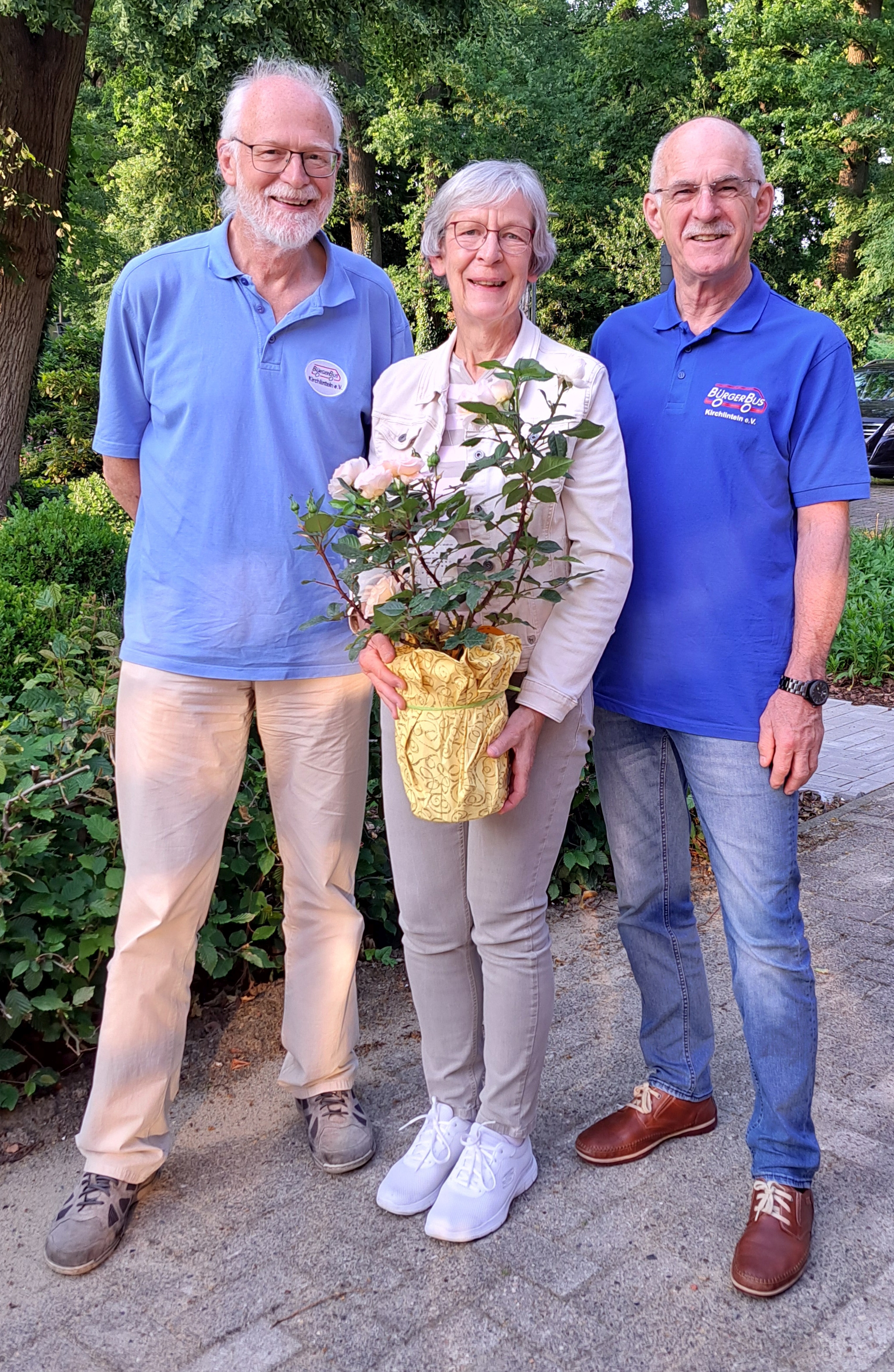 Anlässlich des Fahrerstammtisches am 20.10.2025 haben Wolfgang Rodewald und Reinhard Ries unseren Fahrer Hardy Peters offiziell verabschiedet. Für seinen fünfjährigen Einsatz gab es neben anerkennenden Worten für sein stets freundliches und vorbildliches Engagement auch eine Rose für den eigenen Garten. Die schöne Blume soll Hardy auch in vielen Jahren noch an die Zeit im BürgerBus-Verein erinnern. Von Ende 2020 bis Oktober 2025 war Hardy als Fahrer aktiv und hat dem Verein und vielen Fahrgästen viel ehren- amtliche Zeit mit stets guter Laune und viel Freundlichkeit geschenkt. Aus persönlichen Gründen musste er die Fahrertätigkeit jetzt beenden. | ![]() Wir sind ihm für die vielen gefahrenen Kilometer und die damit verbundenen Aktivitäten sehr dankbar und wünschen ihm für die Zukunft alles Gute! (21.10.2025) |