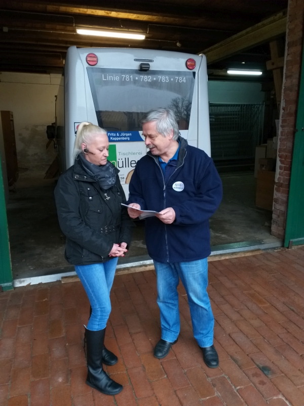 Soziale Teilhabe. Dieses Kapitel ist nun Geschichte für Kathrin.Es war eine Zeit, an die sie sich gerne erinnert. 34 Monate lang hat Kathrin Tag für Tag den BürgerBus durch die Gemeinde Kirchlinteln gefahren und zusammen mit den ehrenamtlichen Fahrerinnen und Fahrern den ÖPNV in den Ortschaften der Lintler Geest zum Wohle der Bevölkerung durchgeführt. Sie ist den kleinen Bus gerne gefahren, sagt sie, hat viele nette Menschen kennengelernt, neue Erfahrungen in der Zeit beim BürgerBus gemacht und Lob und Anerkennung bekommen. Nun ist also diese Zeit vorbei. Kathrin wird mit Beginn des Jahres 2019 einen weiteren Schritt in ihrem Leben gehen. Sie hat bei der Firma Allerbus, dem Konzessionär des BürgerBus-Vereins, zum neuen Jahr eine Anstellung erhalten. Dort wird sie in der nächsten Zeit die 8-sitzigen Busse fahren, die sie schon beim BürgerBus gefahren hat und parallel dazu den großen Busführerschein machen. Danach wird sie dann beim Stadtbusverkehr einsteigen und sicher auch wieder durch Kirchlinteln fahren. |